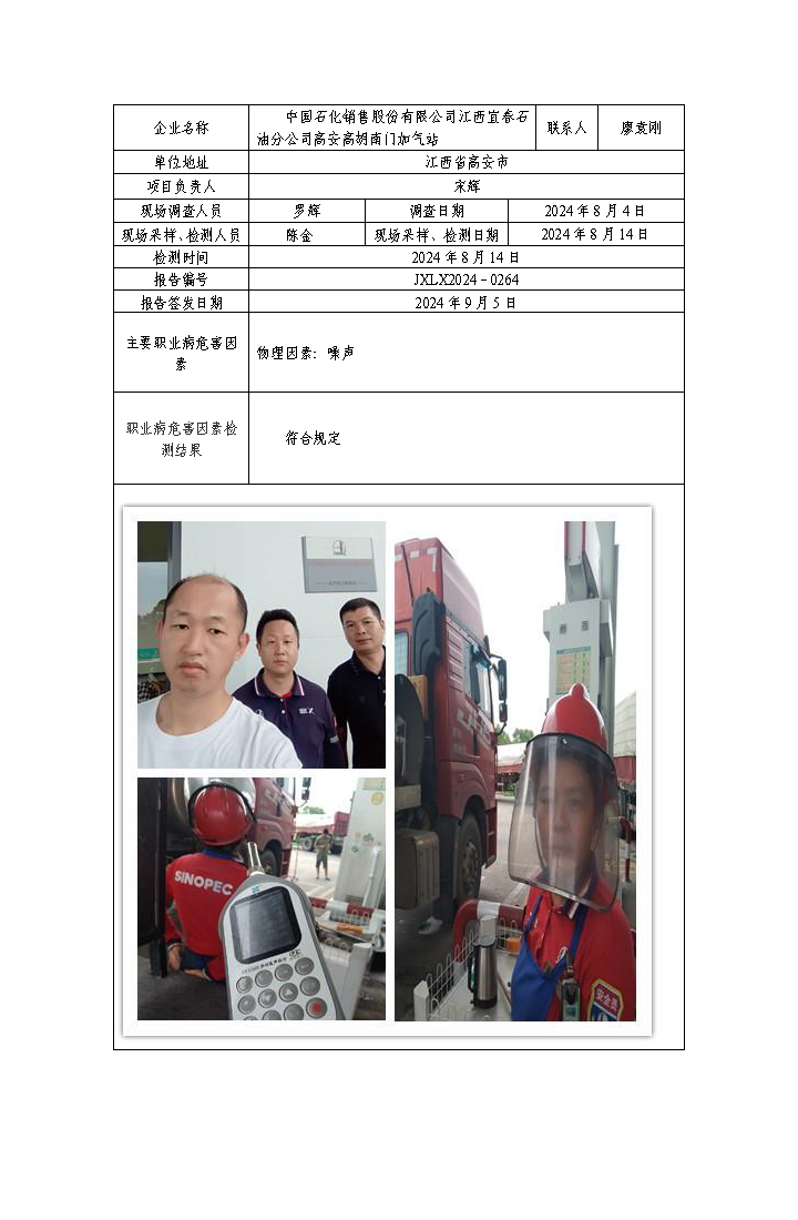 JXLX2024-0264中国石化销售股份有限公司江西宜春石油分公司高安高胡南门加气站检测报告公示