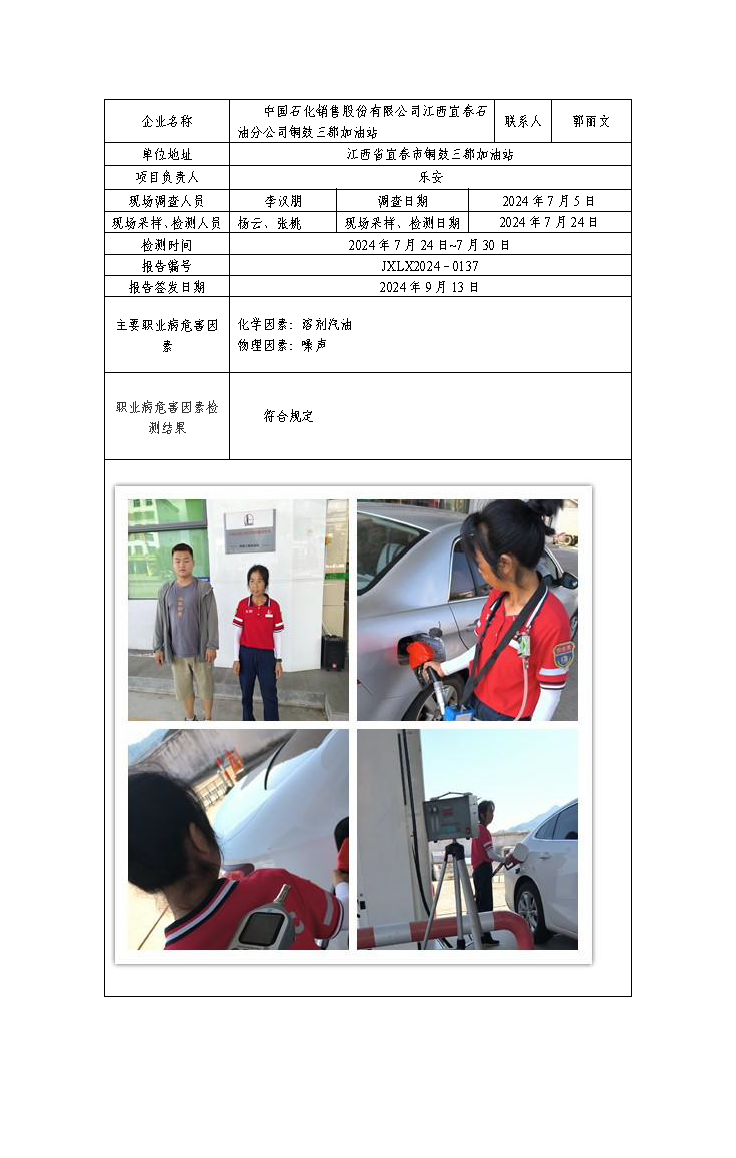 JXLX2024-0137中国石化销售股份有限公司江西宜春石油分公司铜鼓三都加油站检测报告公示
