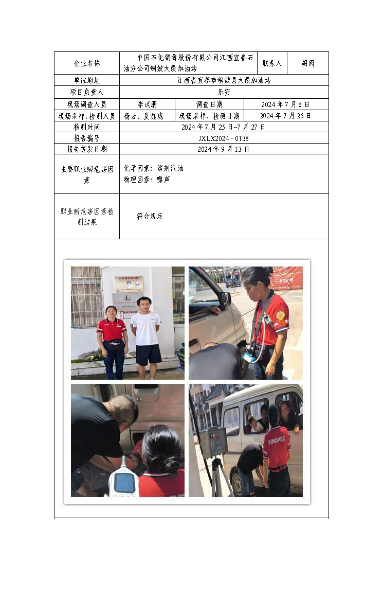报告编号:JXLX2024-0139中国石化销售股份有限公司江西宜春石油分公司铜鼓江头加油站检测报告公示