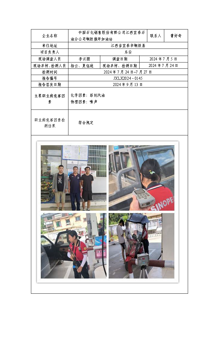 报告编号:JXLX2024-0145中国石化销售股份有限公司江西宜春石油分公司铜鼓棋坪加油站检测报告公示