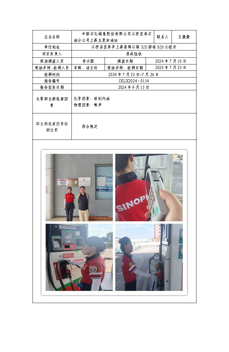 报告编号:JXLX2024-0154中国石化销售股份有限公司江西宜春石油分公司上高五里加油站检测报告公示