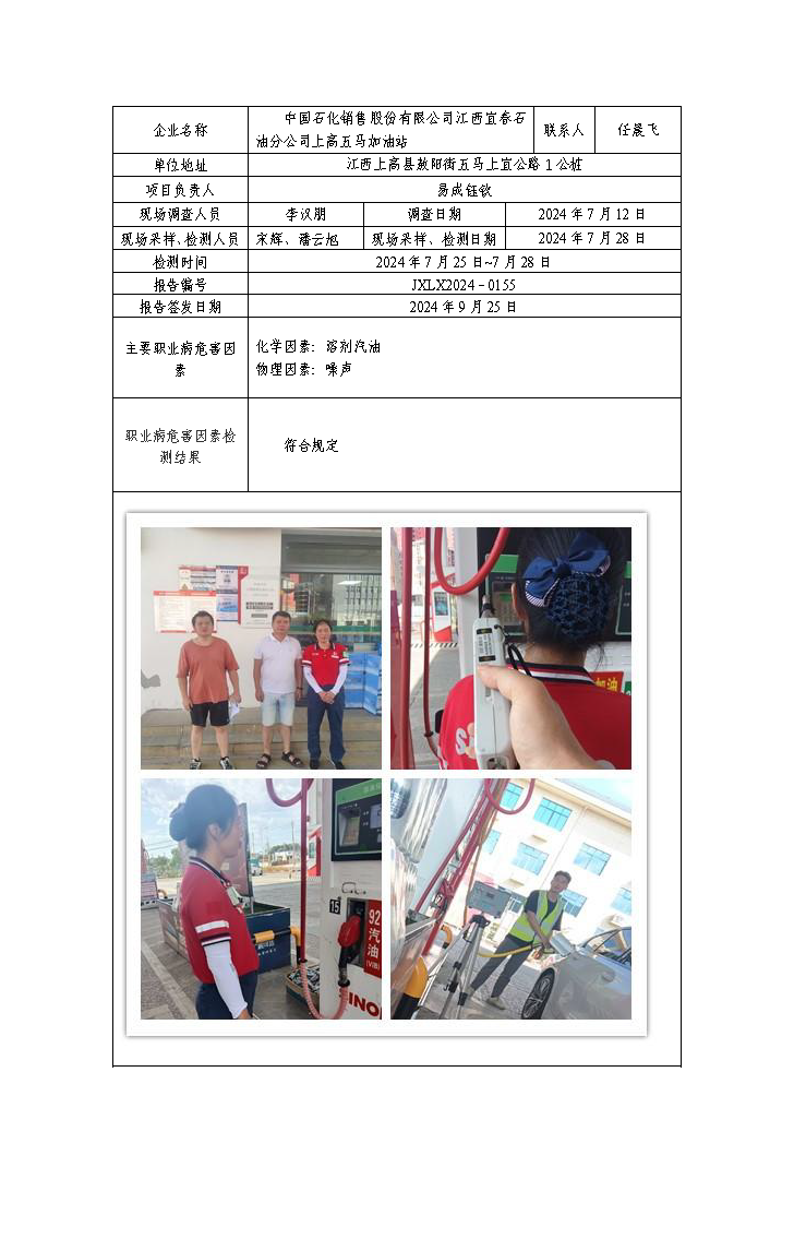 报告编号:JXLX2024-0155中国石化销售股份有限公司江西宜春石油分公司上高五马加油站检测报告公示
