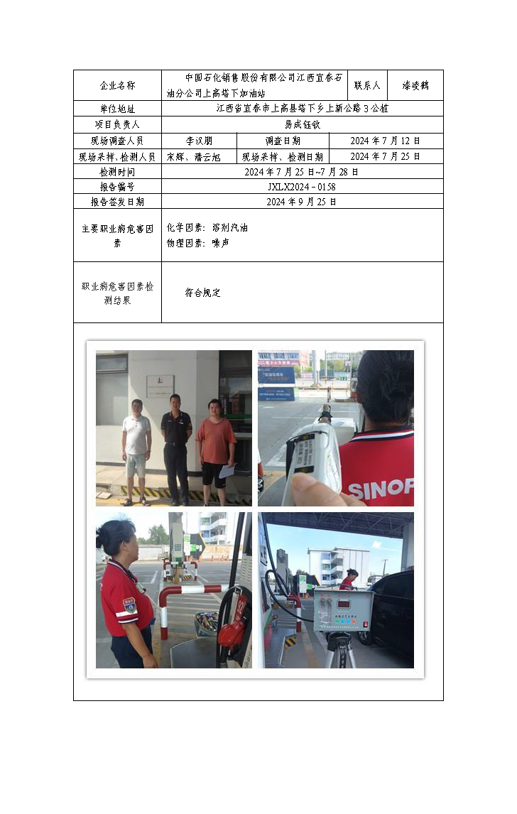 报告编号:JXLX2024-0158中国石化销售股份有限公司江西宜春石油分公司上高塔下加油站检测报告公示