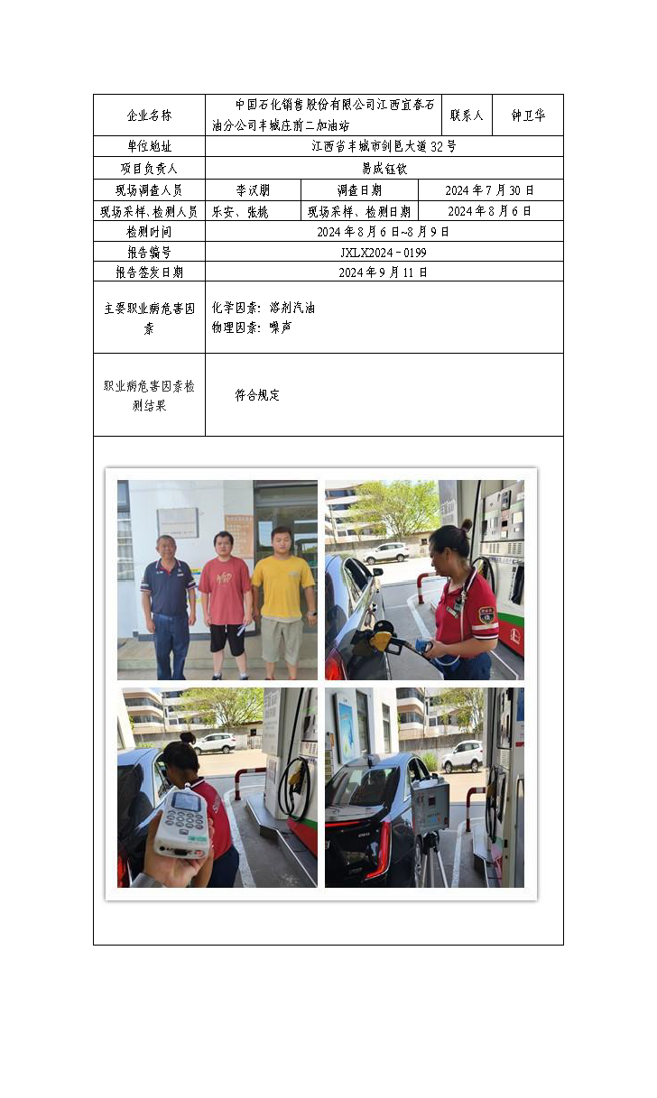 报告编号:JXLX2024-0199中国石化销售股份有限公司江西宜春石油分公司丰城庄前二加油站检测报告公示