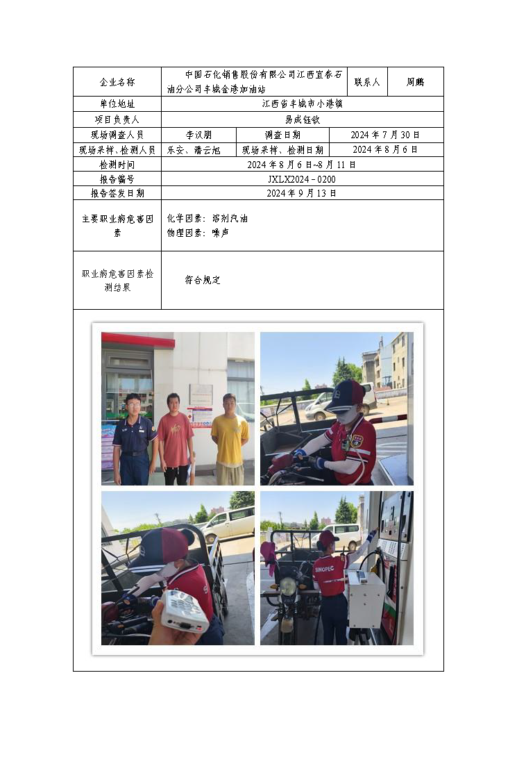 报告编号:JXLX2024-0200中国石化销售股份有限公司江西宜春石油分公司丰城金港加油站检测报告公示