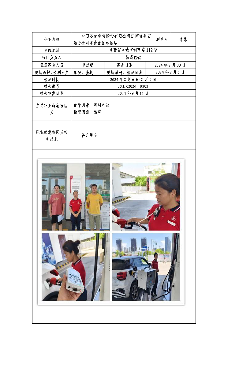报告编号:JXLX2024-0202中国石化销售股份有限公司江西宜春石油分公司丰城金星加油站检测报告公示