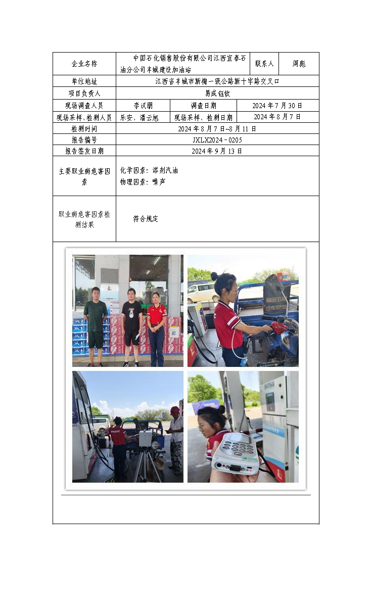 报告编号:JXLX2024-0202中国石化销售股份有限公司江西宜春石油分公司丰城金星加油站检测报告公示
