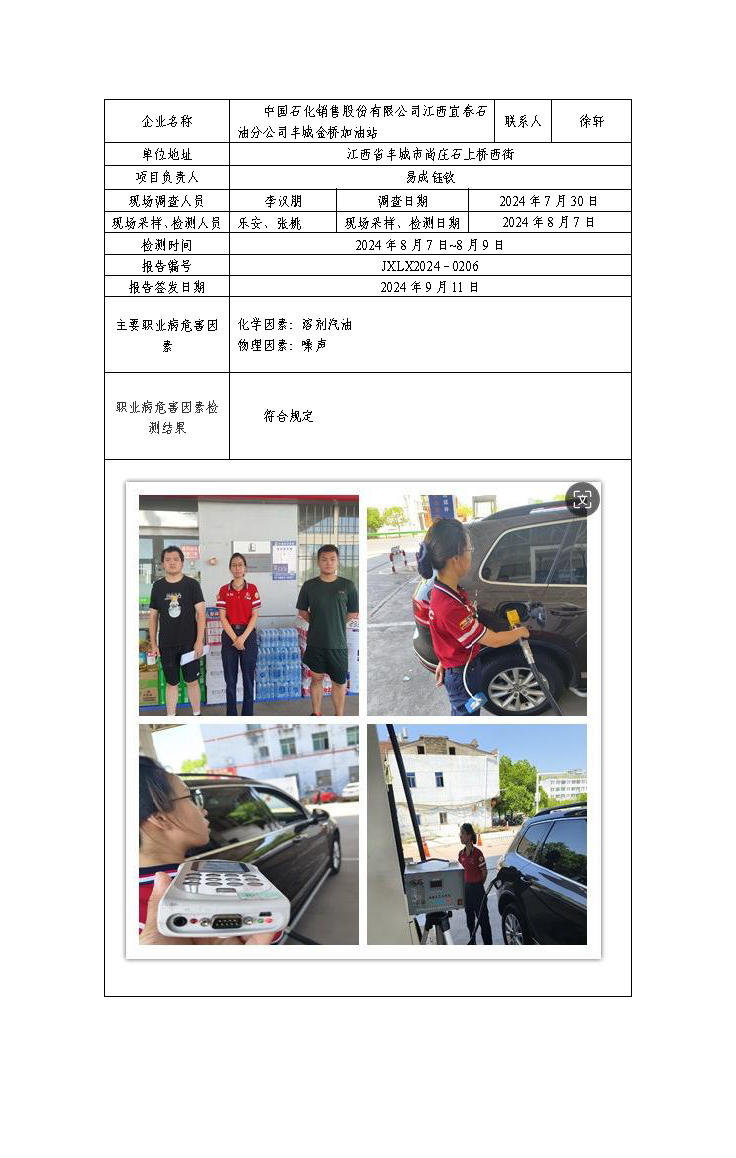 报告编号:JXLX2024-0206中国石化销售股份有限公司江西宜春石油分公司丰城金桥加油站检测报告公示