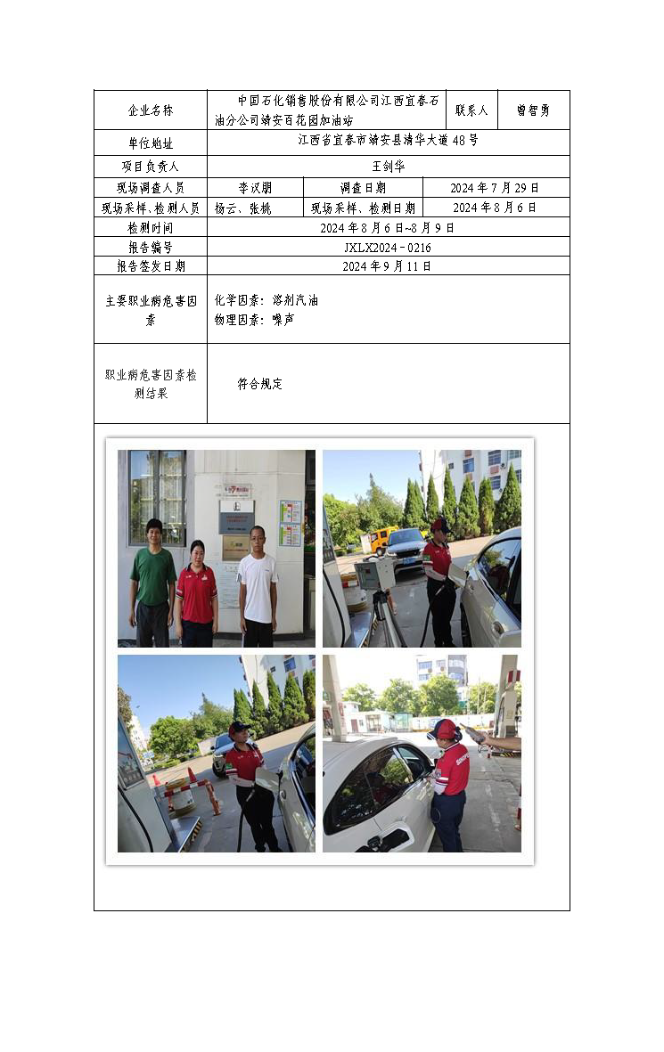 报告编号:JXLX2024-0216中国石化销售股份有限公司江西宜春石油分公司靖安百花园加油站检测报告公示