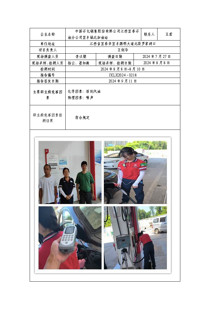 报告编号:JXLX2024-0218中国石化销售股份有限公司江西宜春石油分公司宜丰城北加油站检测报告公示