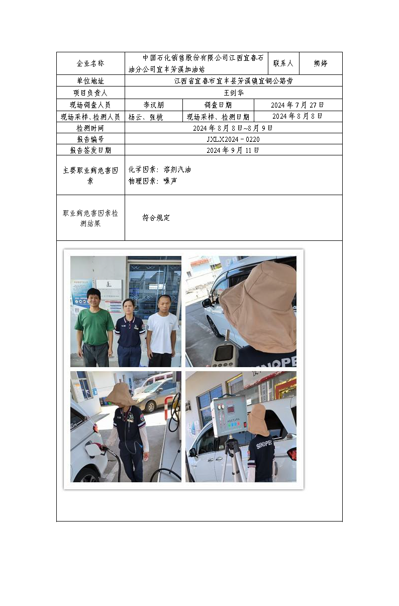 报告编号:JXLX2024-0220中国石化销售股份有限公司江西宜春石油分公司宜丰芳溪加油站检测报告公示
