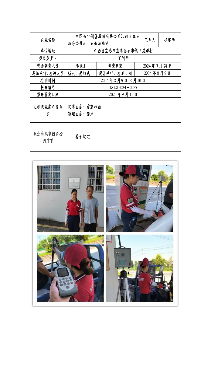 报告编号:JXLX2024-0222中国石化销售股份有限公司江西宜春石油分公司宜丰黄岗加油站检测报告公示