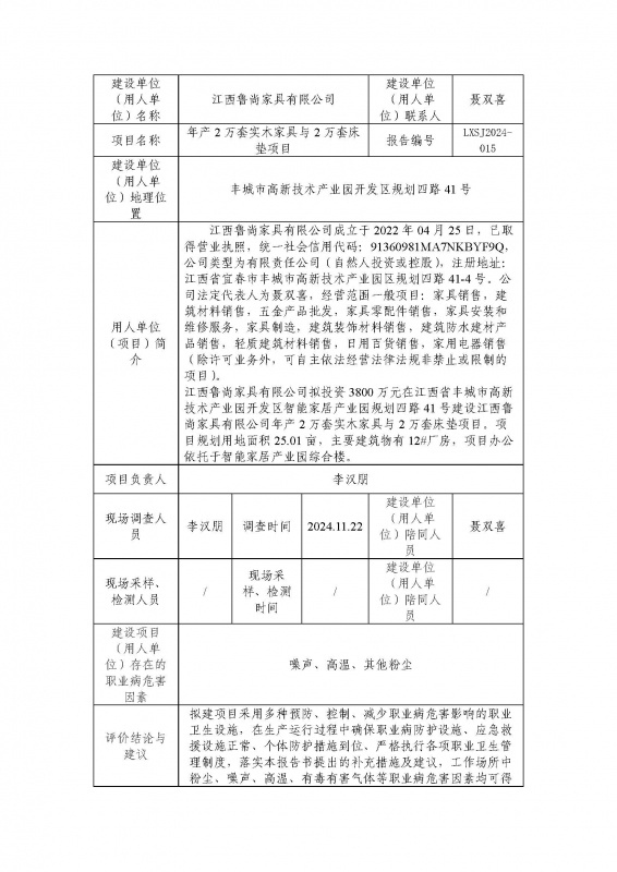 报告编号:LXYP2024-013 报告名称:江西鲁尚家具有限公司年产2万套实木家具与2万套床垫项目预评价公示_页面_1