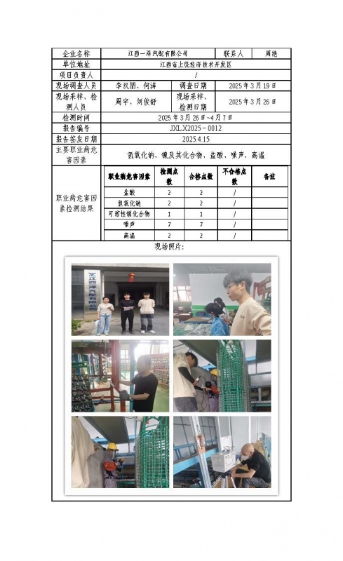 报告编号:JXLX2025-0012江西一泽汽配有限公司检测报告公示