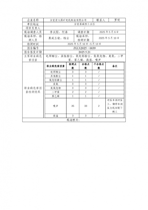 报告编号:JXLX2025-0039分宜宏大煤矿电机制造有限公司站检测报告公示