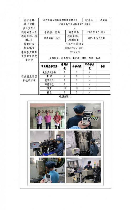 报告编号:JXLX2025-0031江西九鼎动力新能源科技有限公司检测报告公示