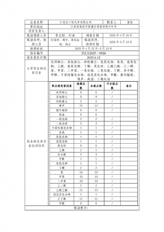 报告编号:JXLX2025-0026 江西五十铃汽车有限公司检测报告公示_页面_1