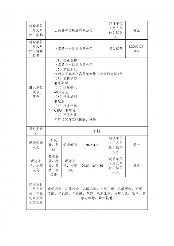 报告编号:LXXP2025-005报告名称:上高县中杰鞋业有限公司现状评价公示_页面_1