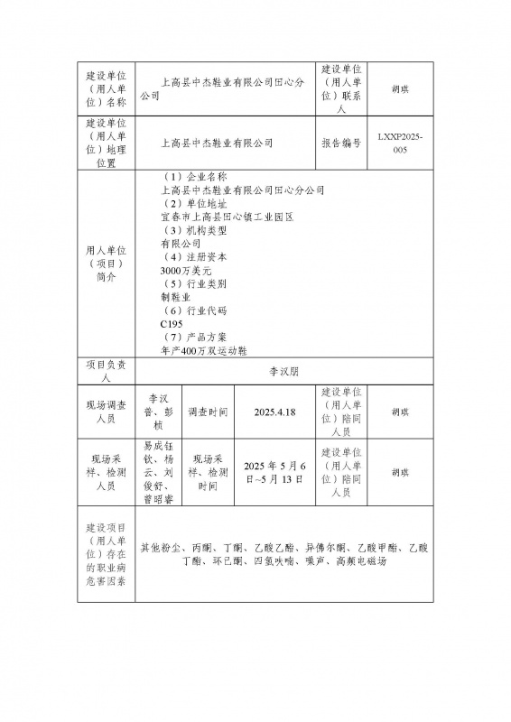 报告编号:LXXP2025-005报告名称:上高县中杰鞋业有限公司现状评价公示_页面_1