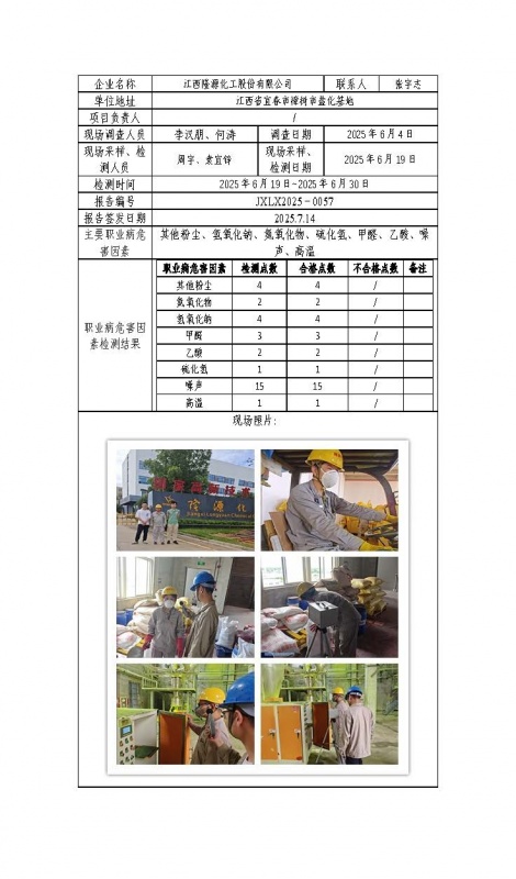报告编号:JXLX2025-0057江西隆源化工股份有限公司检测报告公示