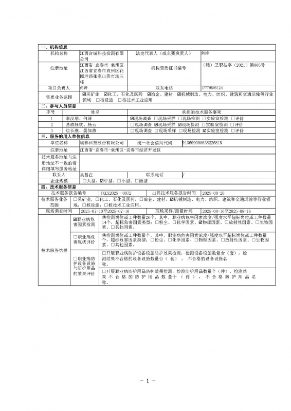 报告编号:JXLX2025-0068江西联大高科有限责任公司检测报告公示_页面_1