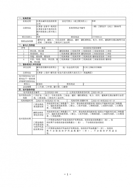 报告编号:LXXP2025-008报告名称:鄱阳县恒隆科技有限公司现状评价公示_页面_1