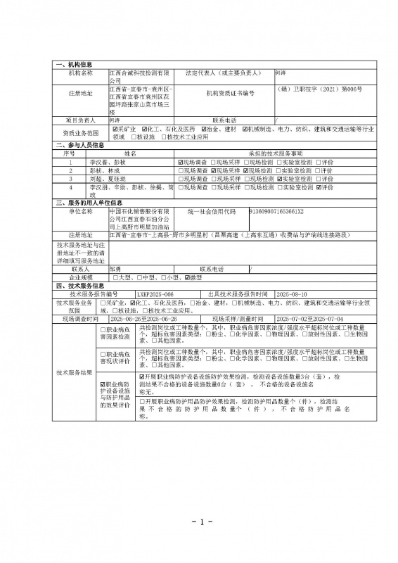 报告编号:LXKP2025-006报告名称:中国石化销售股份有限公司江西宜春石油分公司上高野市明星加油站控制效果评价公示_页面_1