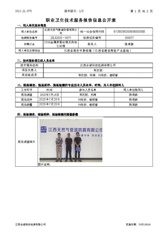 报告编号:JXLX2025-0077江西天然气管道防腐有限公司检测报告公示_页面_1