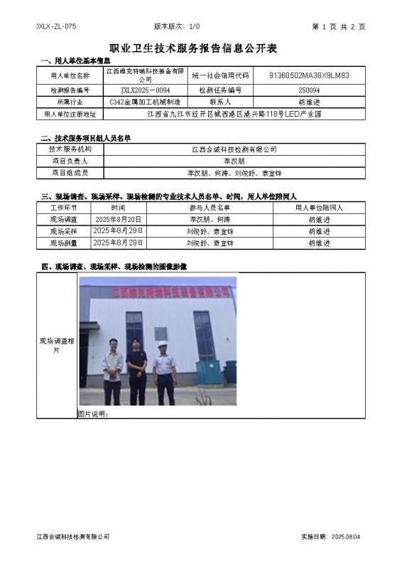 报告编号:JXLX2025-0094 江西维克特瑞科技装备有限公司检测报告公示_页面_1