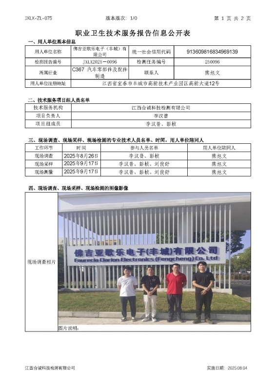 报告编号:JXLX2025-0096佛吉亚歌乐电子(丰城)有限公司检测报告公示_页面_1