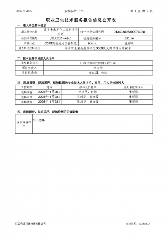 报告编号:JXLX2025-0140萍乡市鑫发化工填料有限公司检测报告公示_页面_1