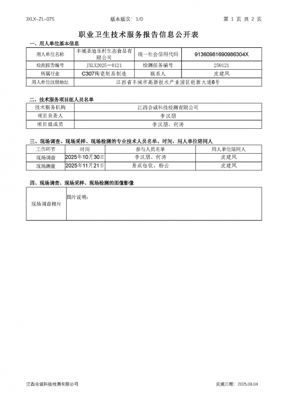 报告编号:JXLX2025-0121丰城圣迪乐村生态食品有限公司检测报告公示_页面_1