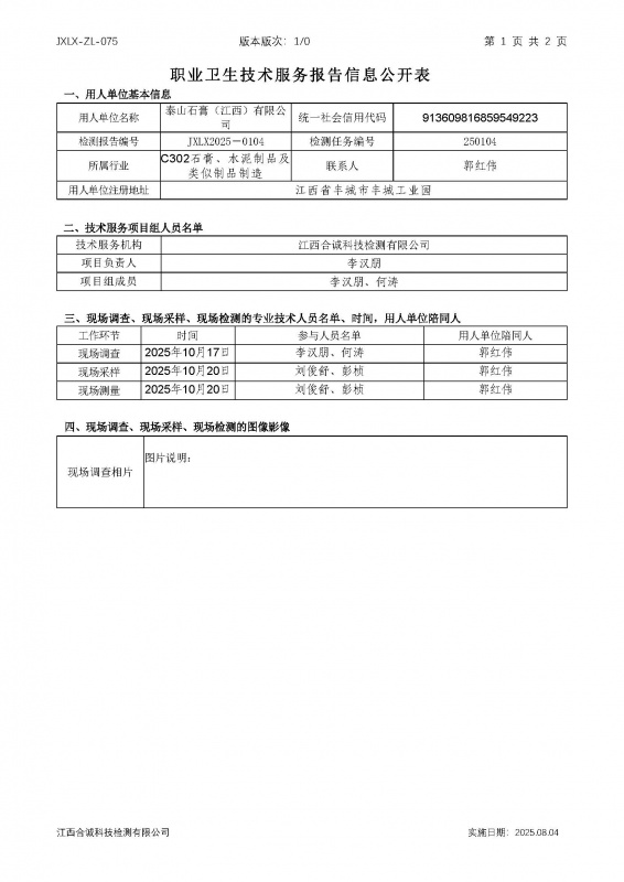 报告编号:JXLX2025-0104泰山石膏(江西)有限公司检测报告公示_页面_1