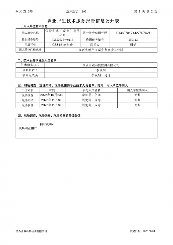 报告编号:JXLX2025-0113佳华电池(瑞金)有限公司检测报告公示_页面_1