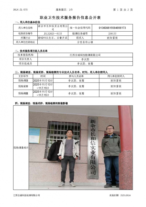 报告编号:JXLX2025-0133新余市长和信实业有限公司检测报告公示_页面_1