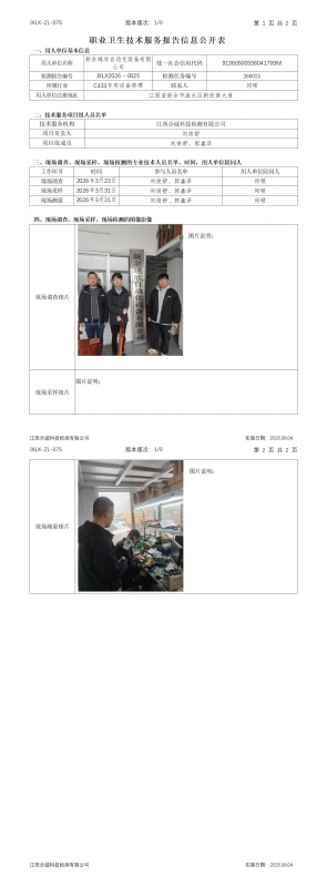 报告编号:JXLX2026-005新余越欣自动化设备有限公司检测报告公示