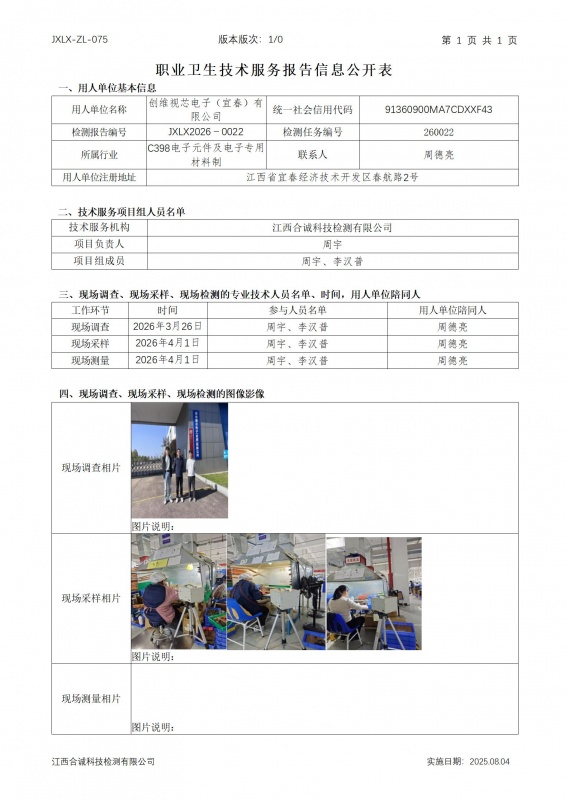 报告编号:JXLX2026-0022 创维视芯电子器件(宜春)有限公司报告公示